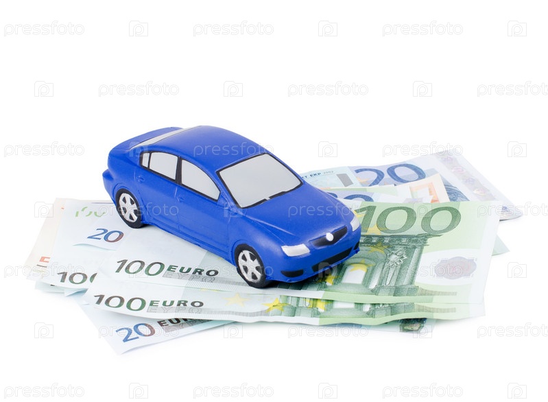 Игрушечный автомобиль и банкноты евро, изолировано