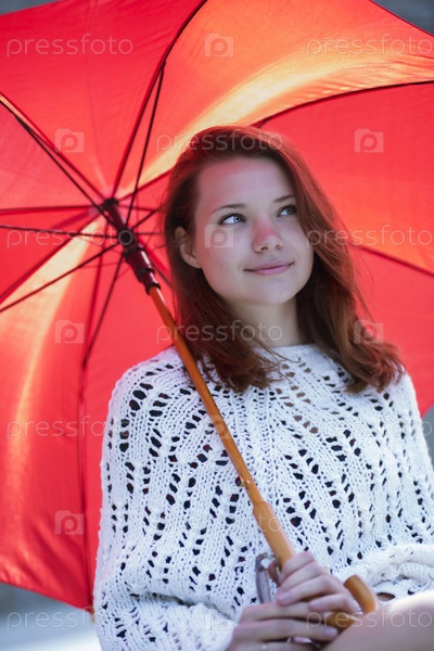 Молодая женщина с открытым зонтиком в руке