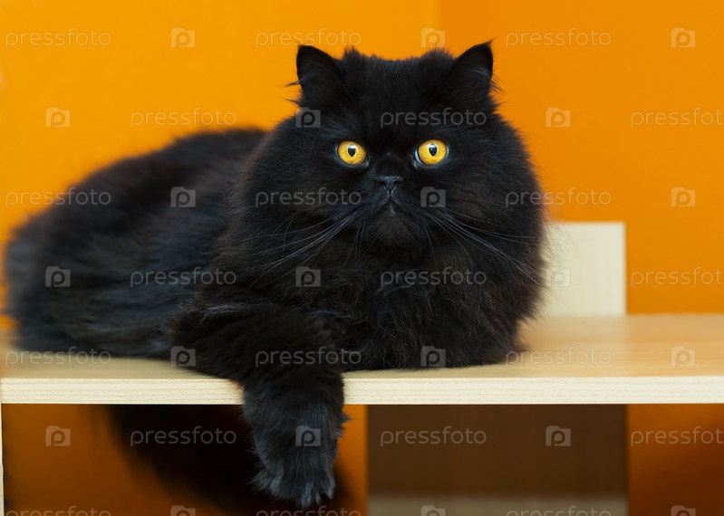 Кот отдыхает на оранжевом фоне