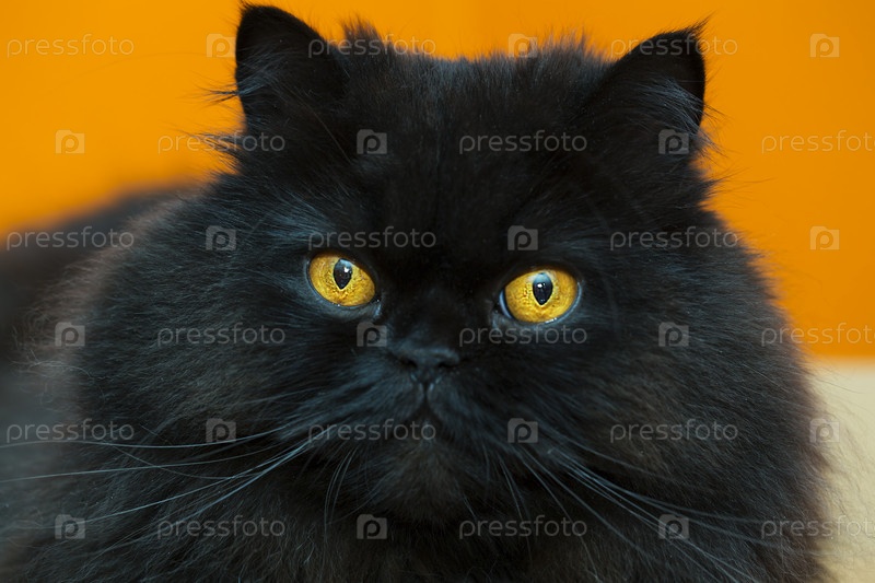 Черный кот на оранжевом фоне