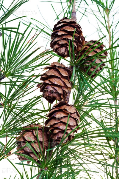 Сосновые шишки на ветке хвойного дерева