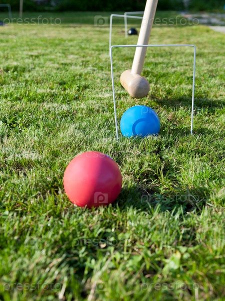 Игра в крокет на зеленом газоне