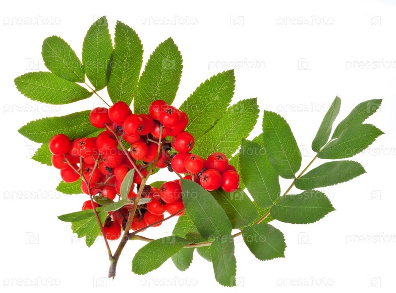 Рябина и зеленые листья