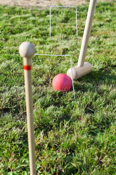 Игра в крокет на зеленом газоне