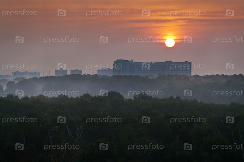 Красный восход солнца над городом