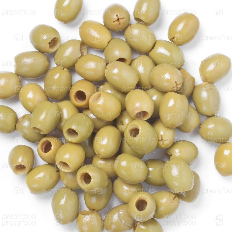 Зеленые оливки на белом фоне