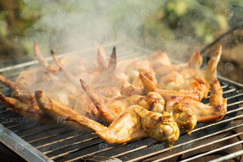 Куриные крылышки готовятся на огне