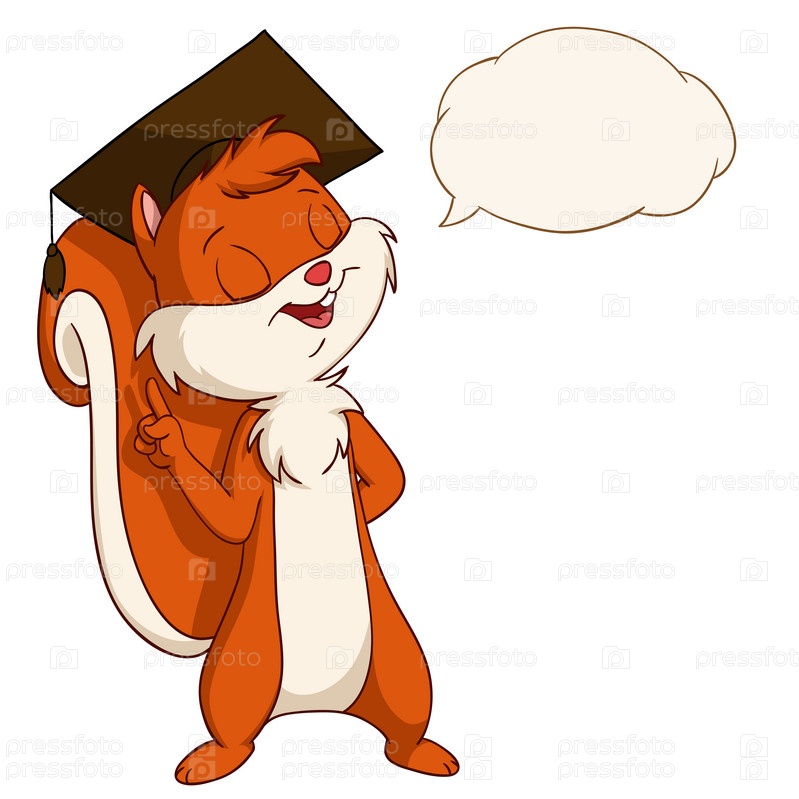 Нарисованная белка в шляпе выпускника и с пузырем для текста