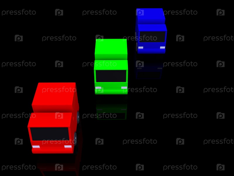 Разноцветные автомобили на черном фоне
