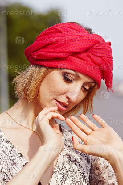Девушка с красными элементами одежды