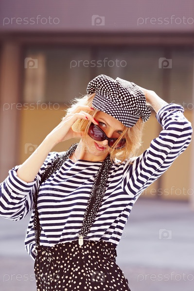 Красивая девушка в полосатой кофте