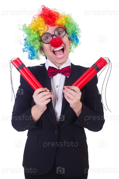 Бизнес-леди клоун, изолированная на белом фоне