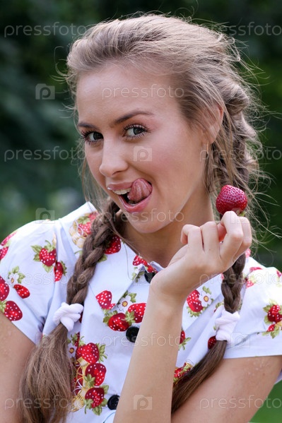 Портрет красивой девушки с клубникой