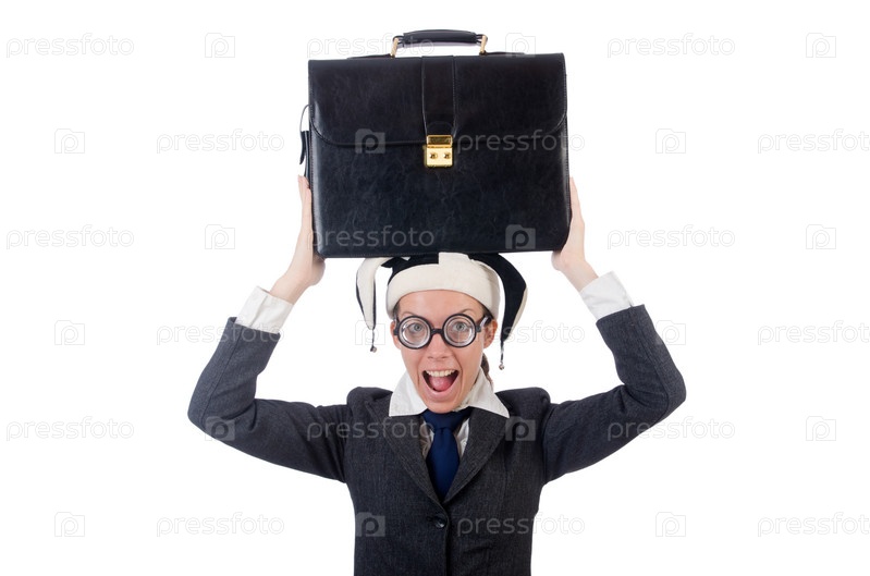 Бизнес-леди клоун, изолированная на белом фоне