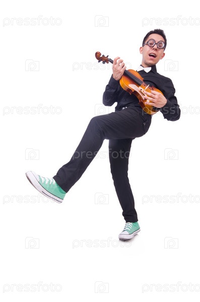 Смешной скрипач на белом фоне