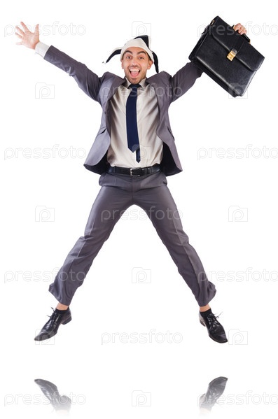 Бизнесмен клоун, изолированный на белом фоне