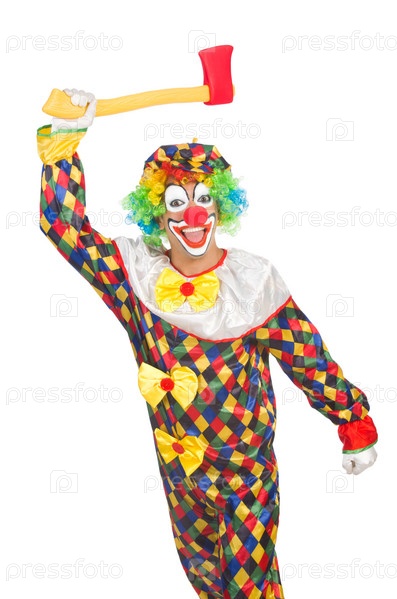 Клоун с топором, изолированный на белом фоне