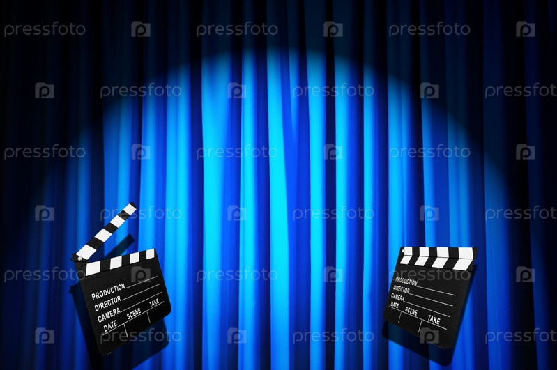 Кино-хлопушка на фоне занавеса