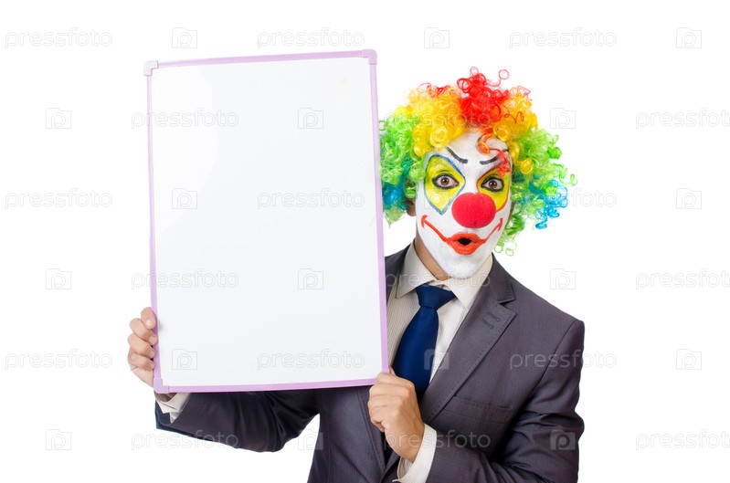 Бизнесмен клоун, изолированный на белом фоне