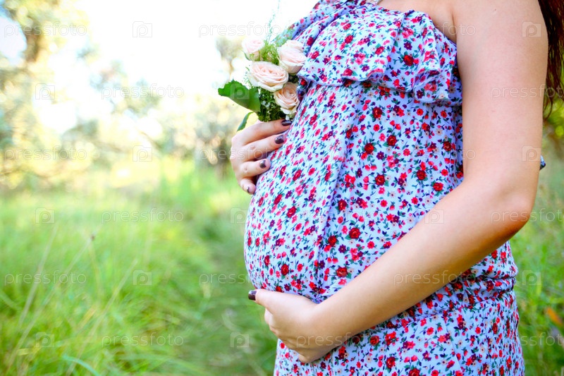 Беременная женщина в летнем парке