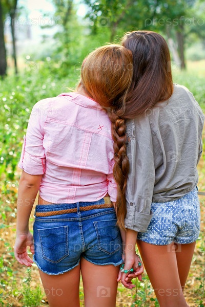 Две подружки с косичкой на открытом воздухе