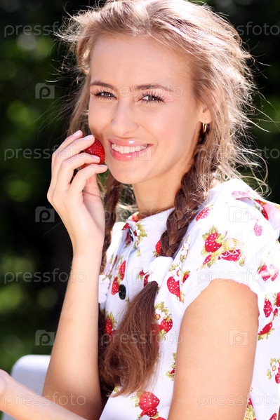 Портрет красивой девушки с клубникой
