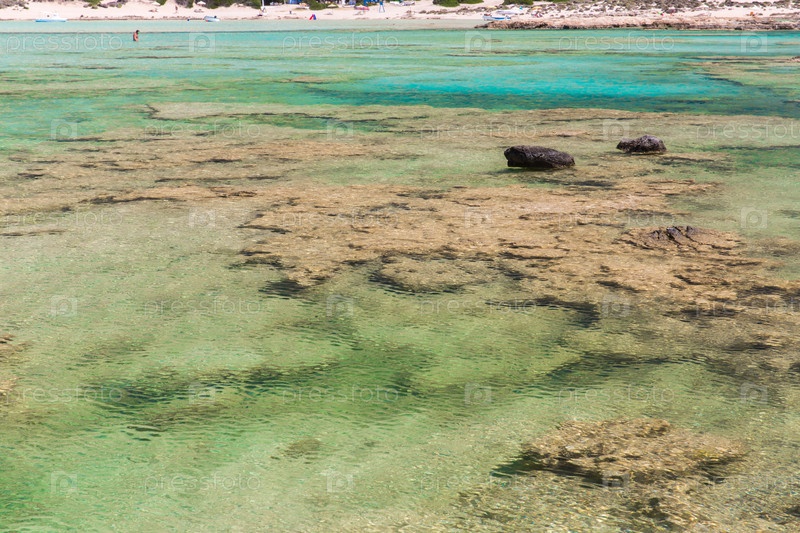 Залив Балос. Вид с острова Грамвуса, Крит. Бирюзовая вода, лагуна, пляж из чистого белого песка