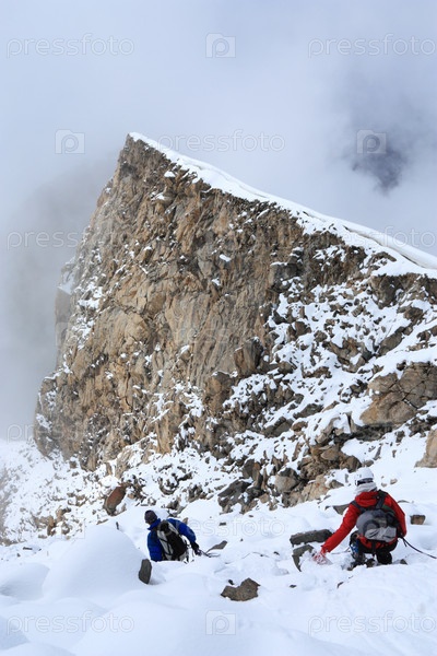 Два альпиниста в заснеженных горах