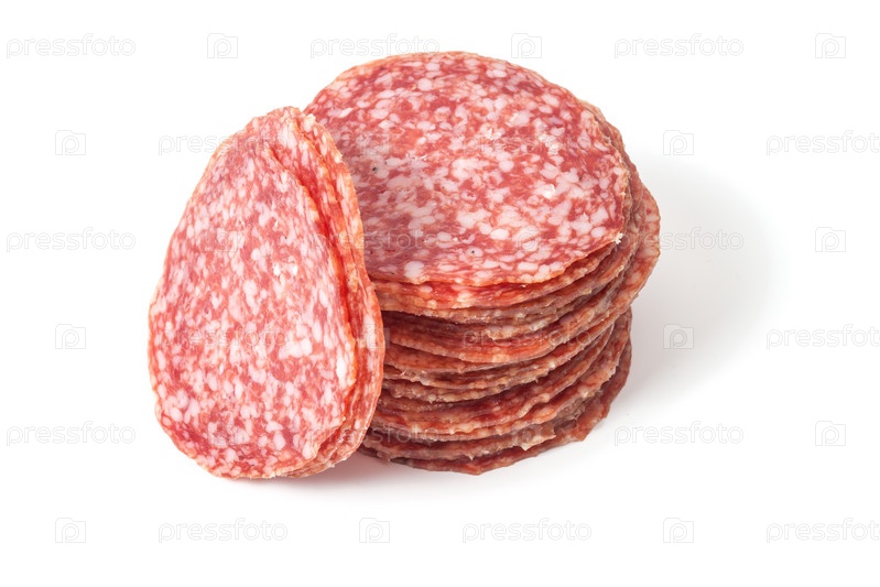 Ломтики салями, изолированные на белом