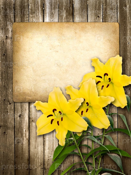 Открытка с желтой лилией в винтажном стиле