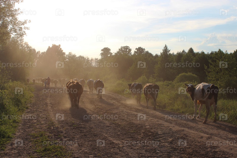 Идущие с пастбища коровы