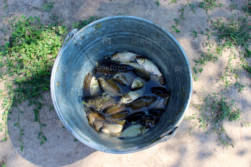 Ведро с пойманными карасями