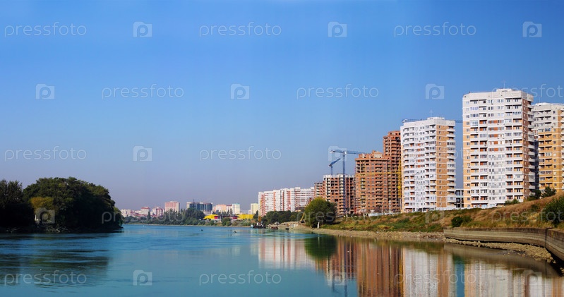 Панорама нового района на берегу реки