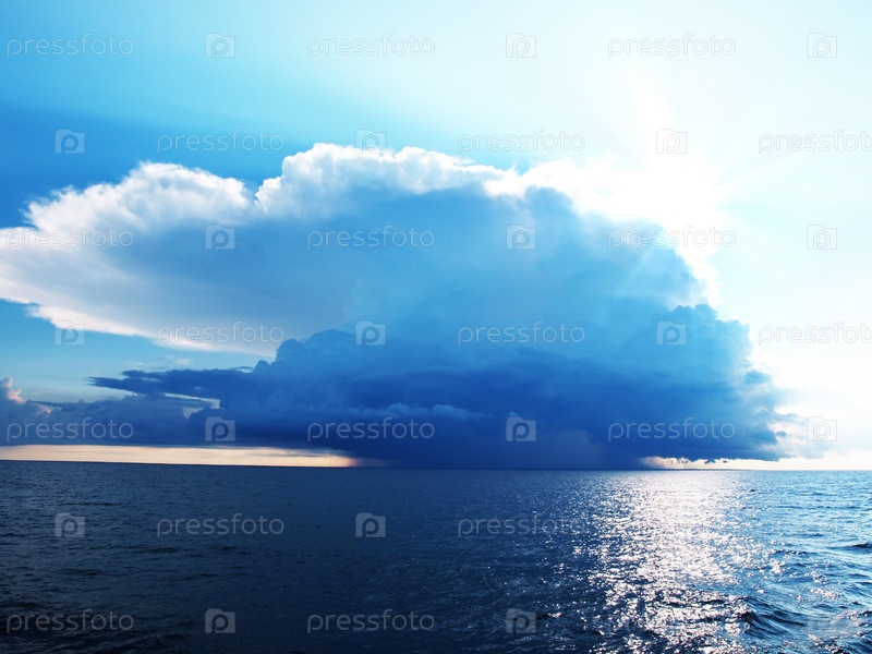 Голубое небо с облаками над морем