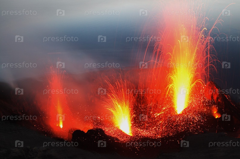 Извергающийся вулкан Стромболи в Италии