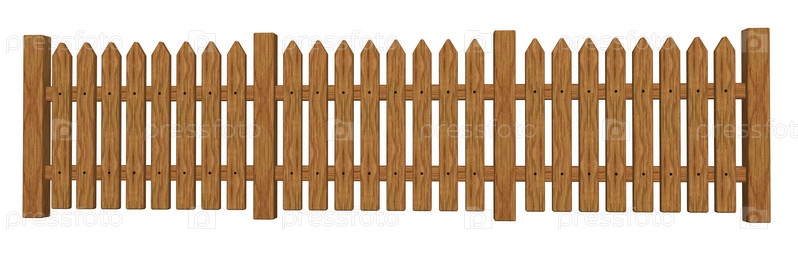 Деревянный садовый забор на белом фоне - 3d иллюстрация