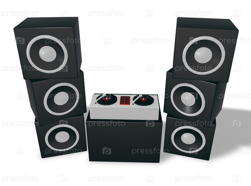 Диджейские катушки и динамики - 3d иллюстрация