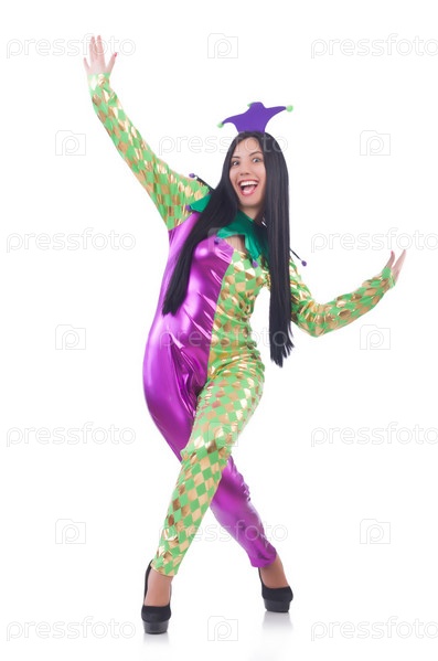 Женщина клоун, изолированная на белом фоне