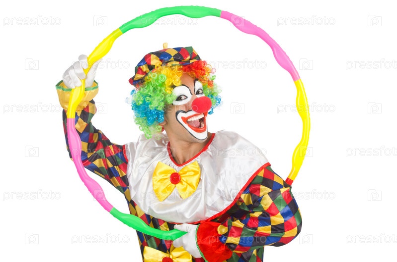 Клоун с обручем, изолированный на белом фоне