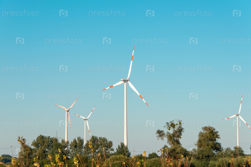 Ветряные мельницы в яркий летний день