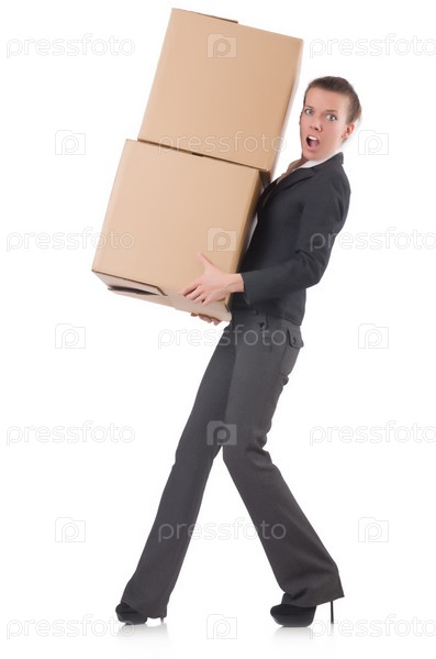 Бизнес-леди с коробками на белом фоне