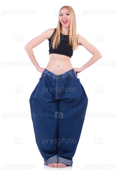 Женщина в концепции диеты с большими джинсами