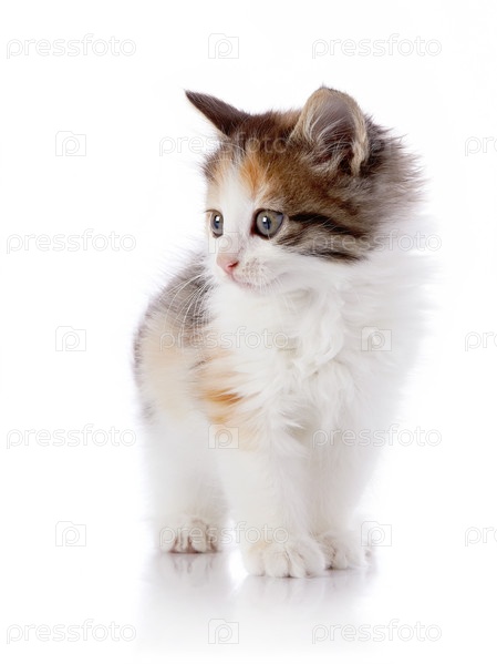 Разноцветный котенок на белом фоне