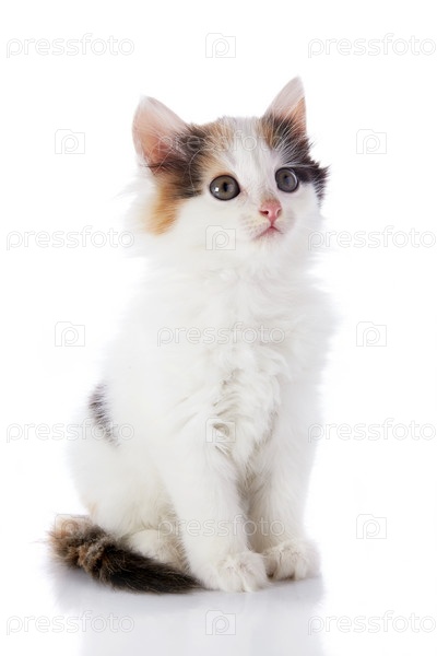 Разноцветный котенок на белом фоне