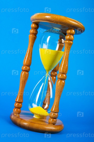 Песочные часы на синем фоне. Метафора времени