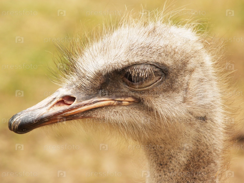 Глава страуса на фоне травы