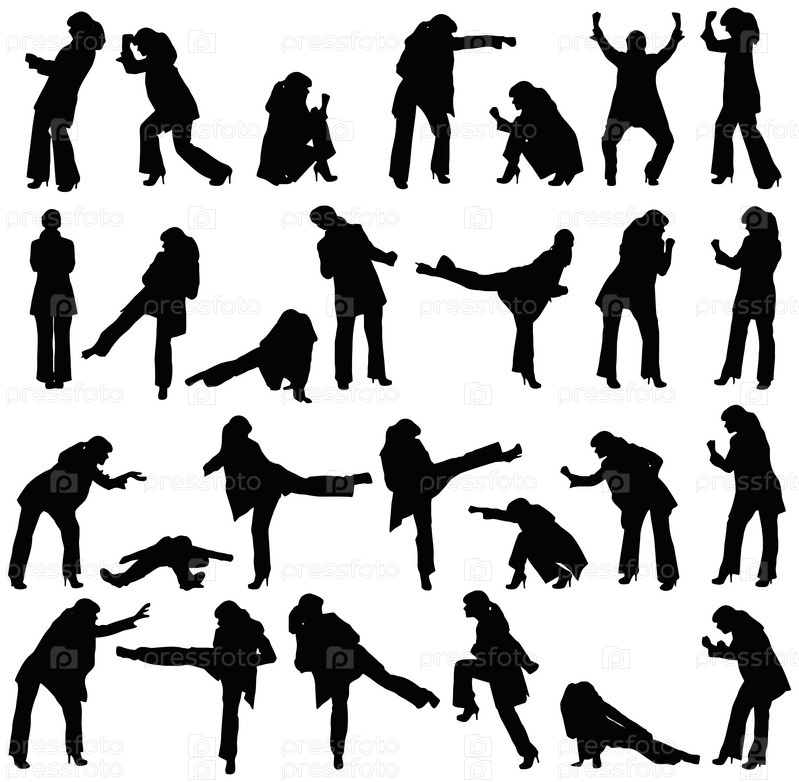 Набор силуэтов - женщины дерутся