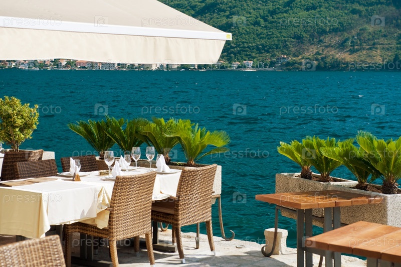 Столики в ресторане на берегу Средиземного моря