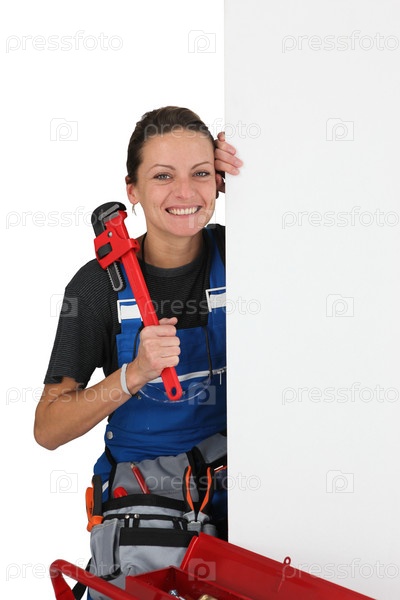 Женщина с пустым баннером и инструментами