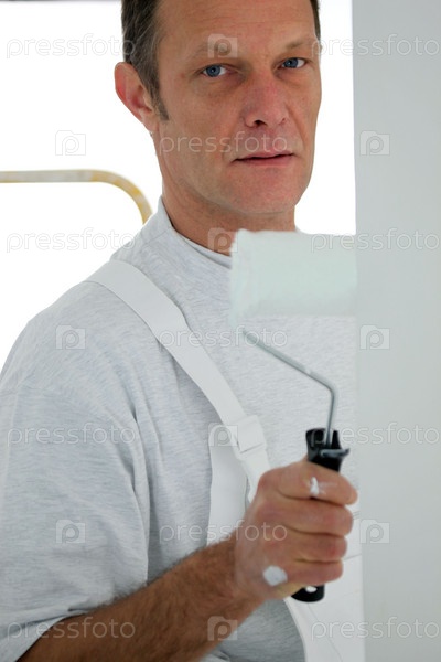 Мужчина красит комнату